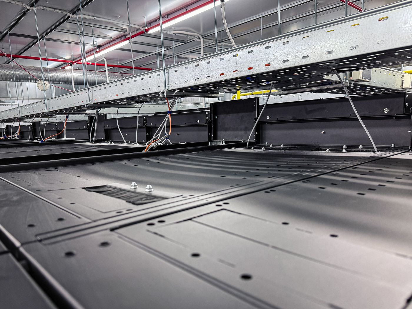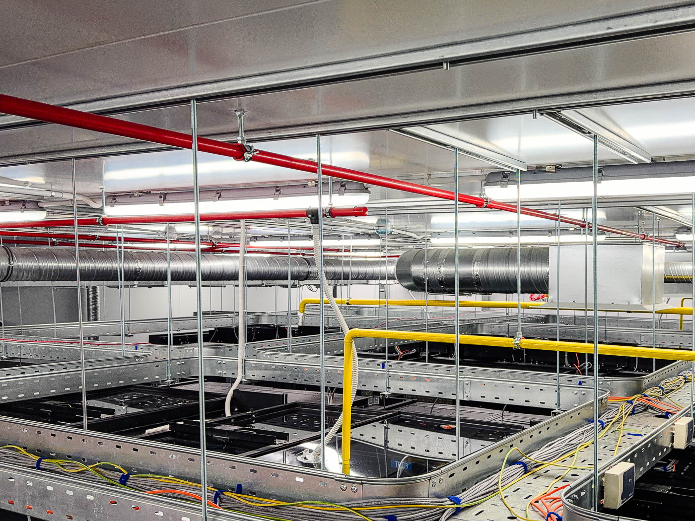 - Монтаж двухуровневой системы металлических лотков;