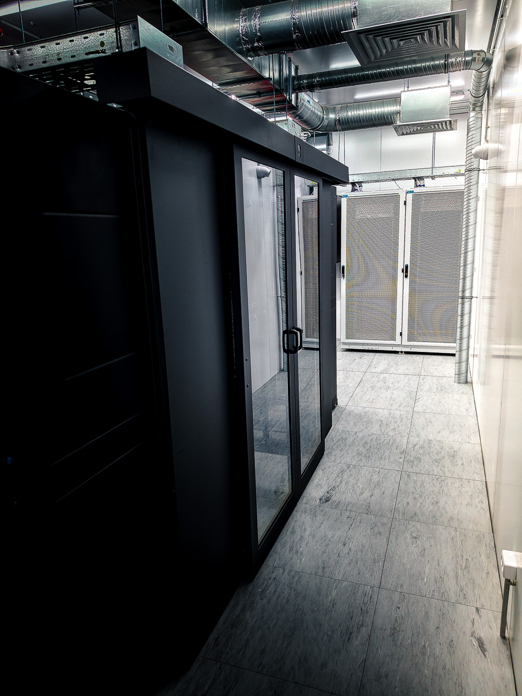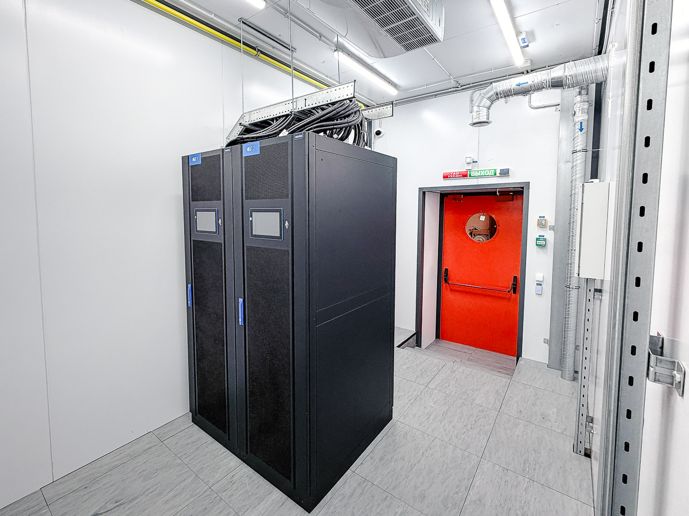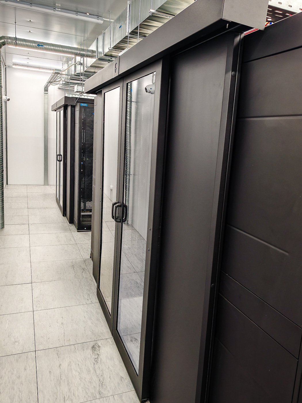 - Сборка и монтаж серверных шкафов с изоляцией холодного/горячего коридоров в количестве 36 штук. Монтаж двух шкафов связи для выполнения задач по коммутации оборудования;