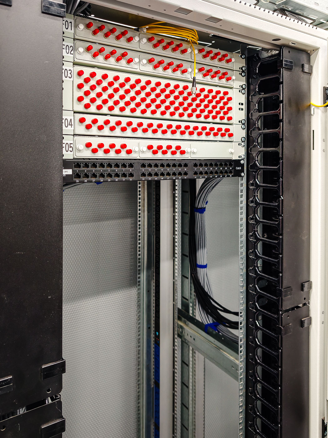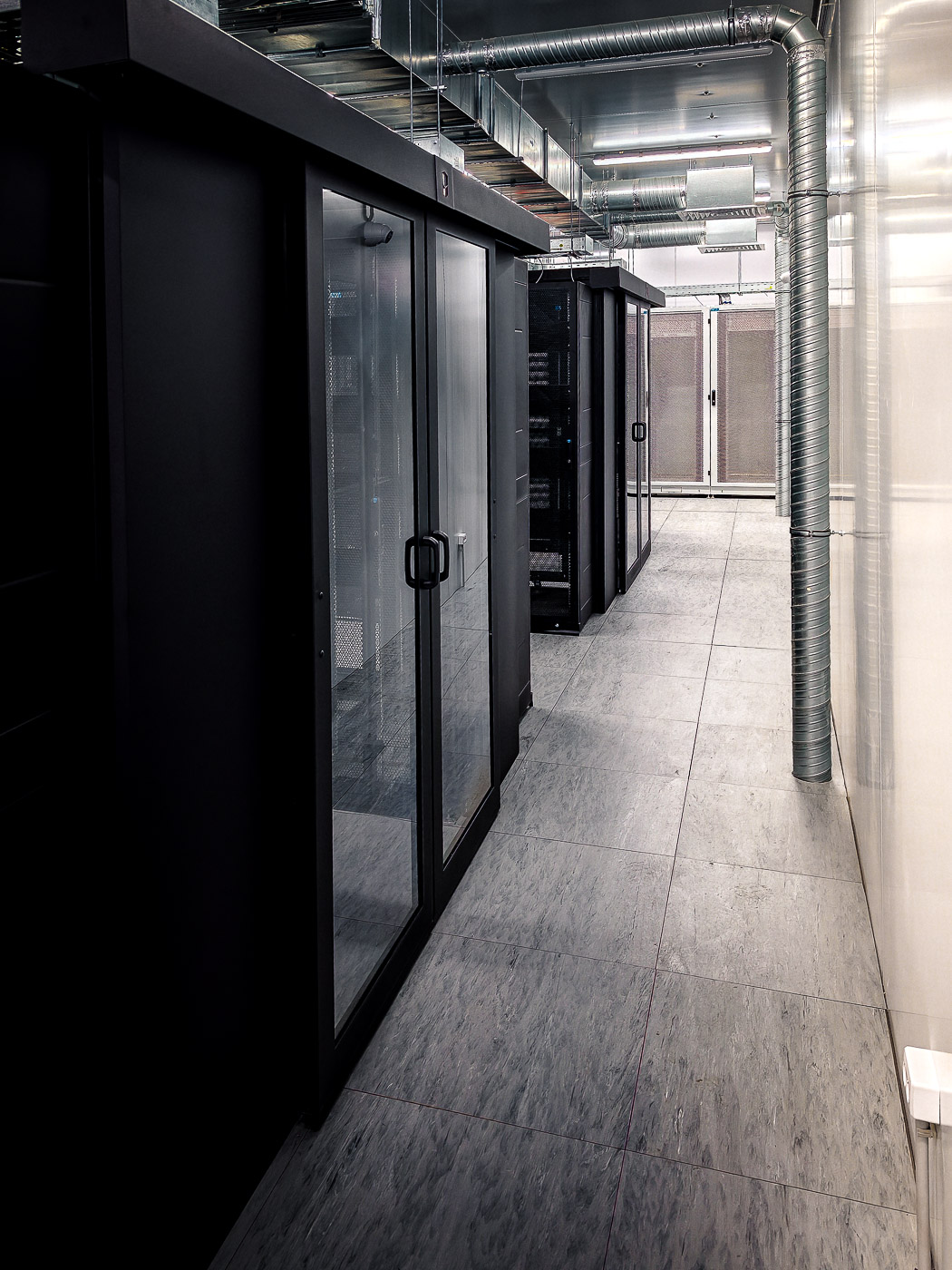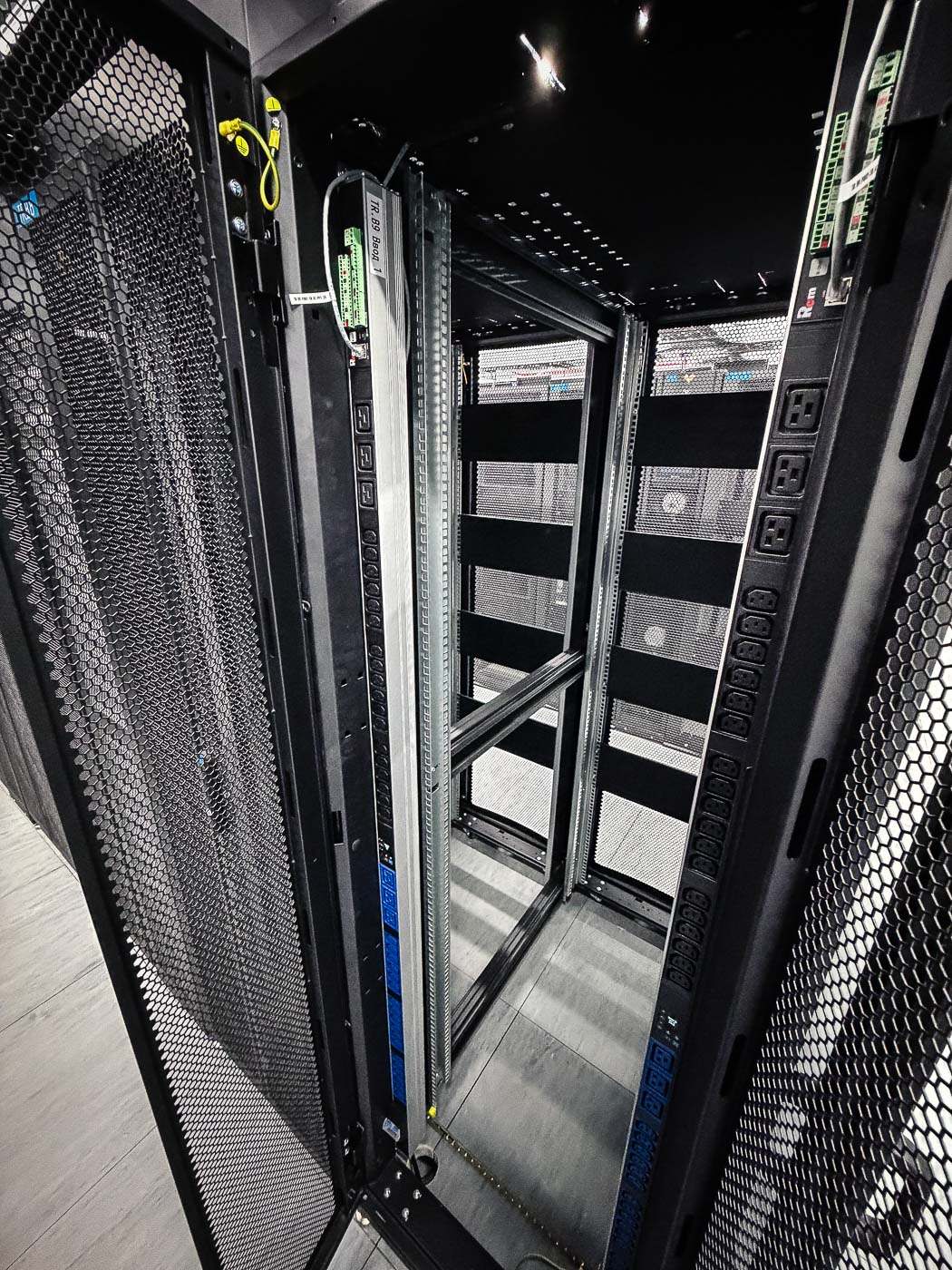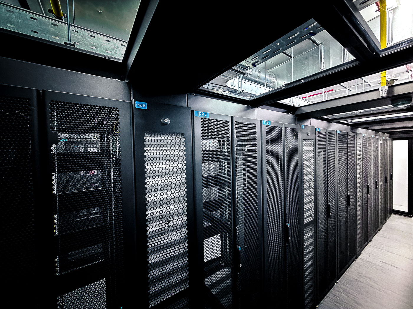 - Сборка и монтаж серверных шкафов с изоляцией холодного/горячего коридоров в количестве 36 штук. Монтаж двух шкафов связи для выполнения задач по коммутации оборудования;