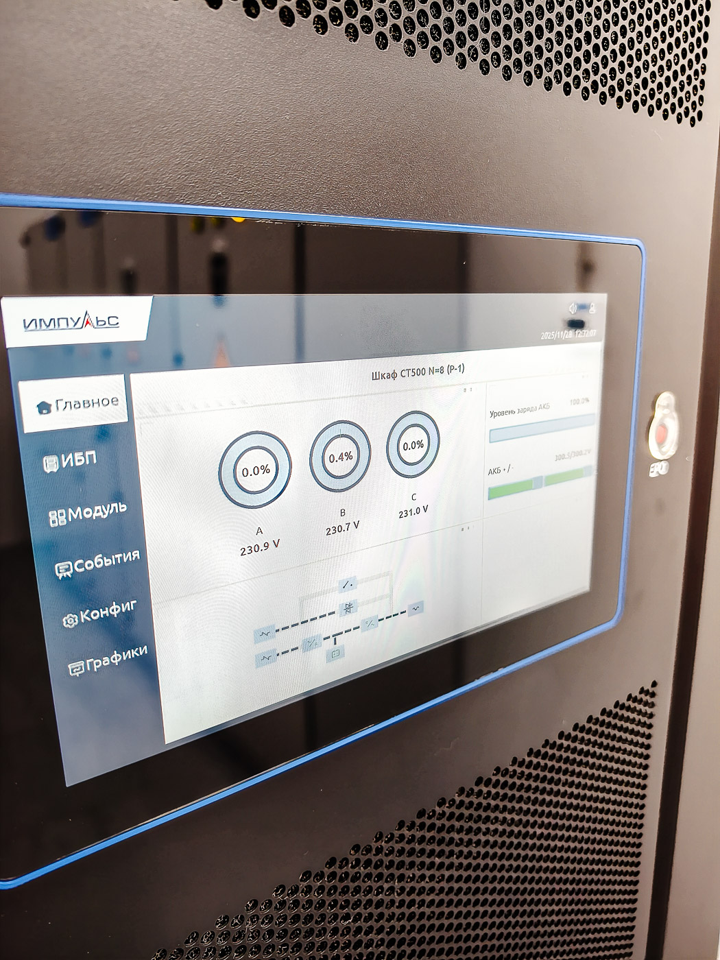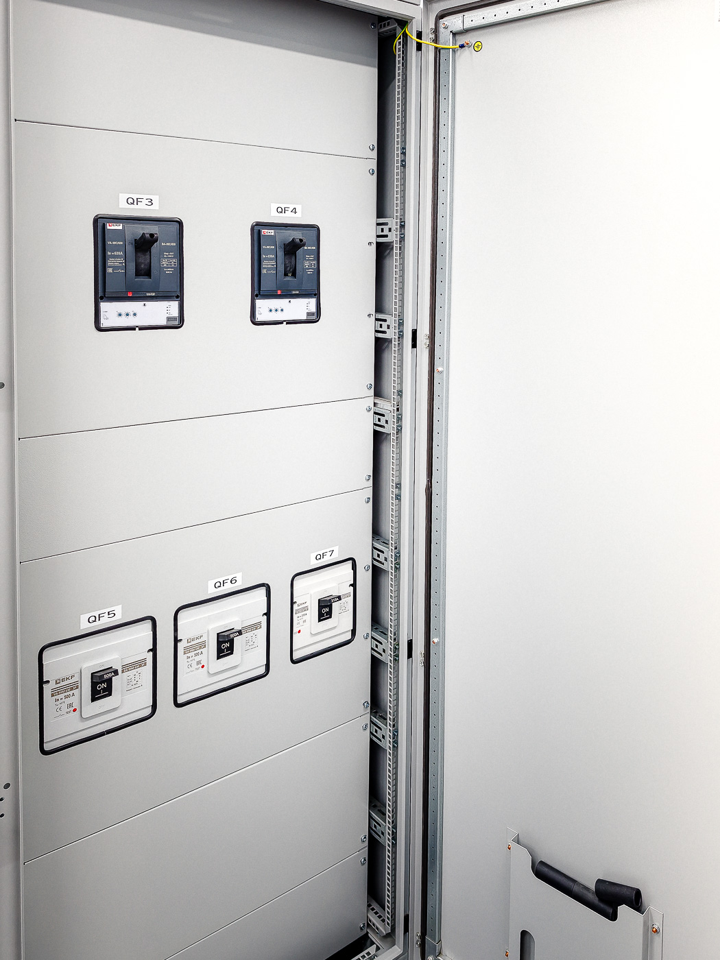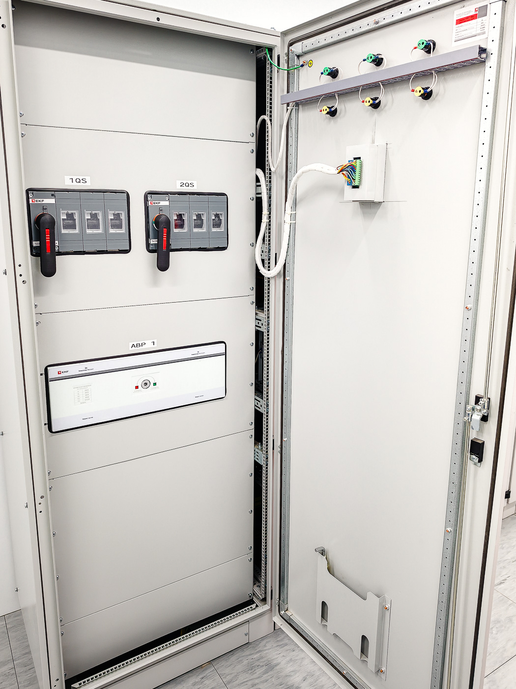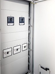 - Прокладка трех линий питания от независимых источников напряжения, включая ДГУ. Сборка и подключение двух автоматических вводов резерва на 630А, сборка трех распределительных щитов;