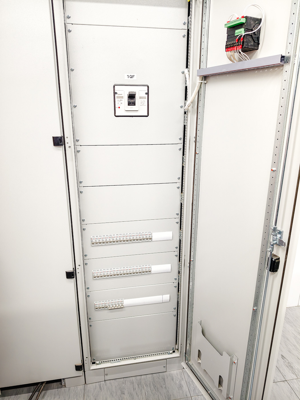 - Установка и подключение системы распределения электропитания в шкафах;