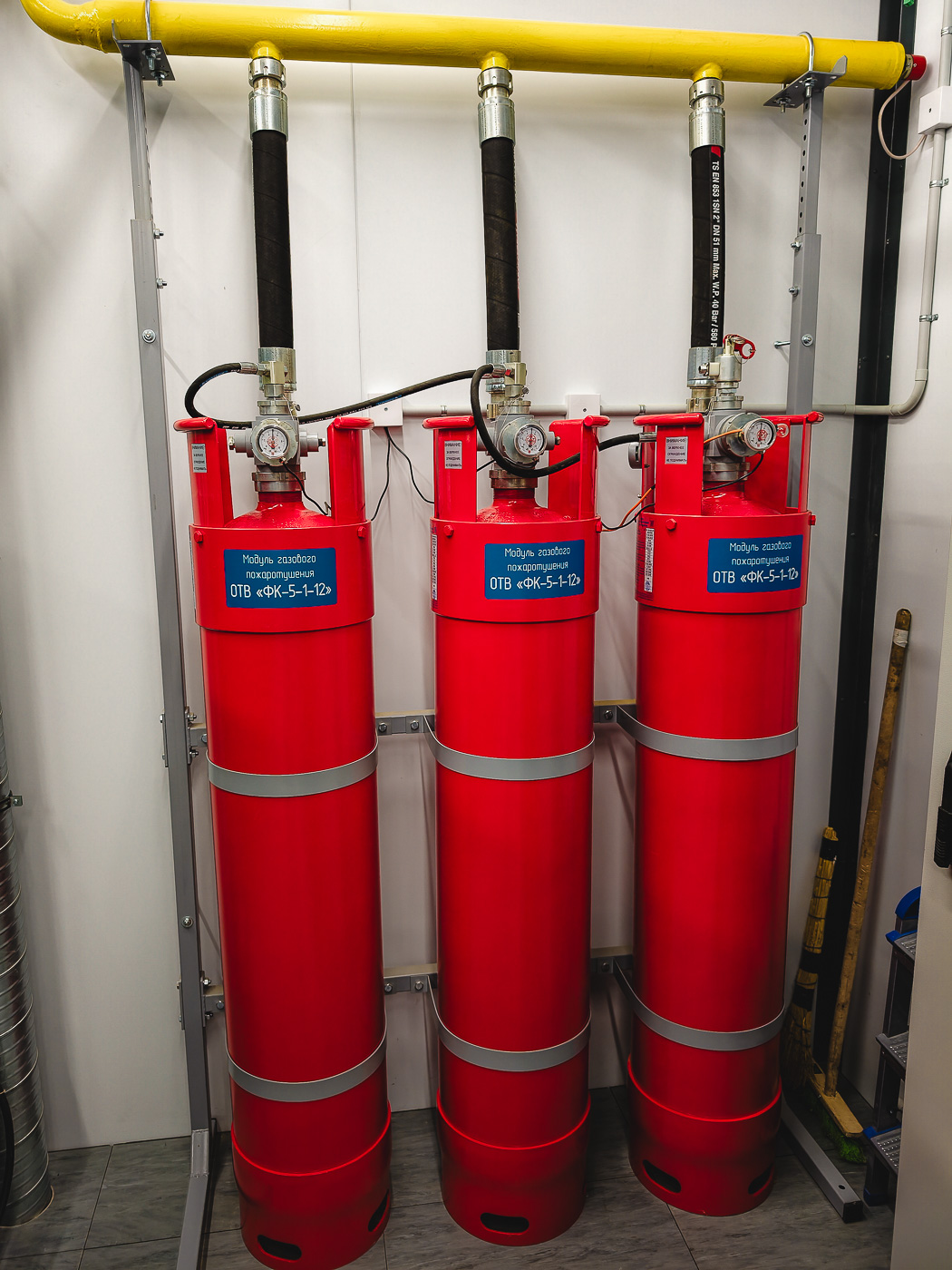 - Монтаж и пусконаладка системы газового пожаротушения (ГОТВ ФК-5-1-12). Интеграция в систему пожарной сигнализации завода;